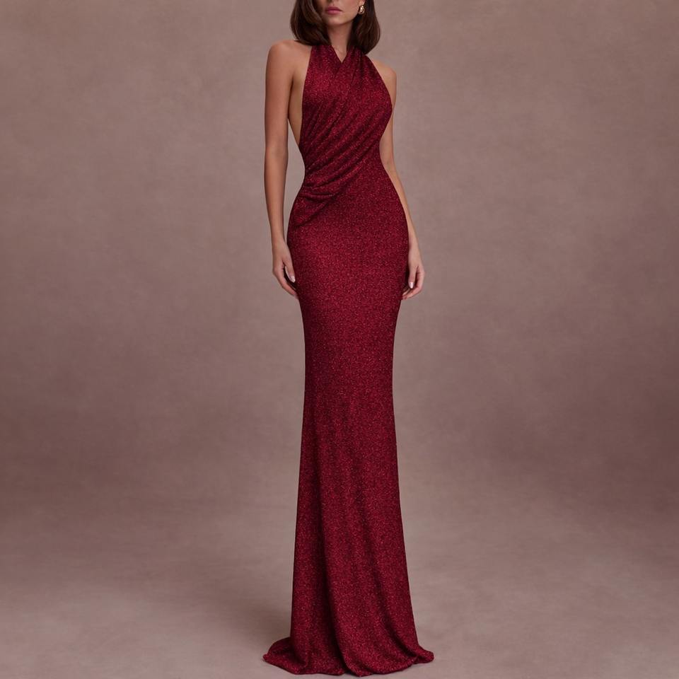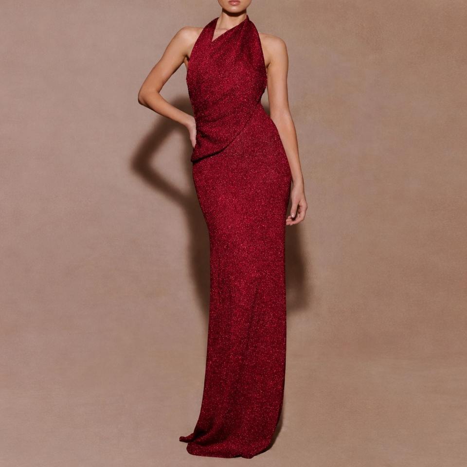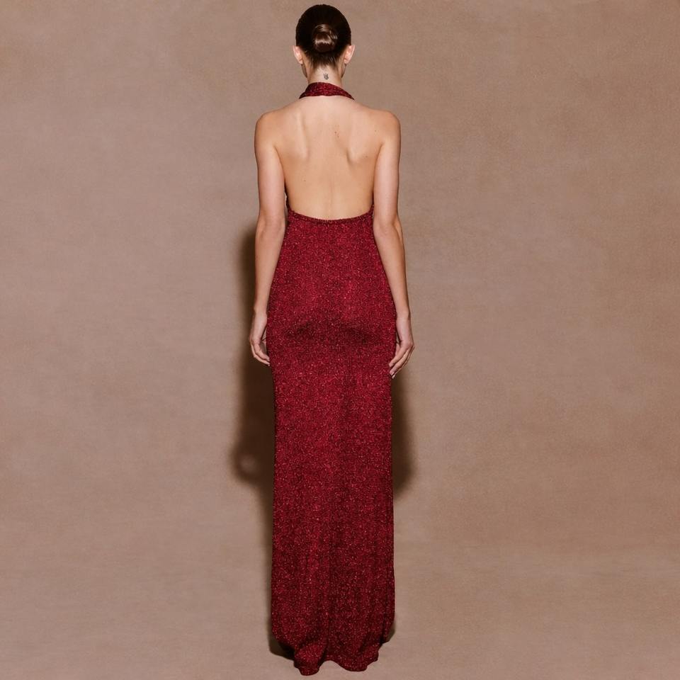 Robe longue dos nu ajustée faite à la main pour femme, idéale pour les soirées et cocktails, couleur rouge