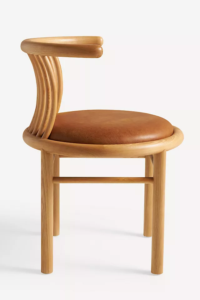 Chaise de salle à manger moderne en bois massif faite à la main avec dossier à lattes et coussin rond marron pour appartement et villa