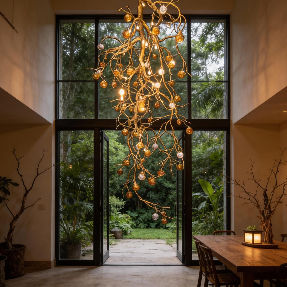 Luminaire suspendu moderne en forme de branche d'arbre et de fruit, style forêt, lustre pour restaurant