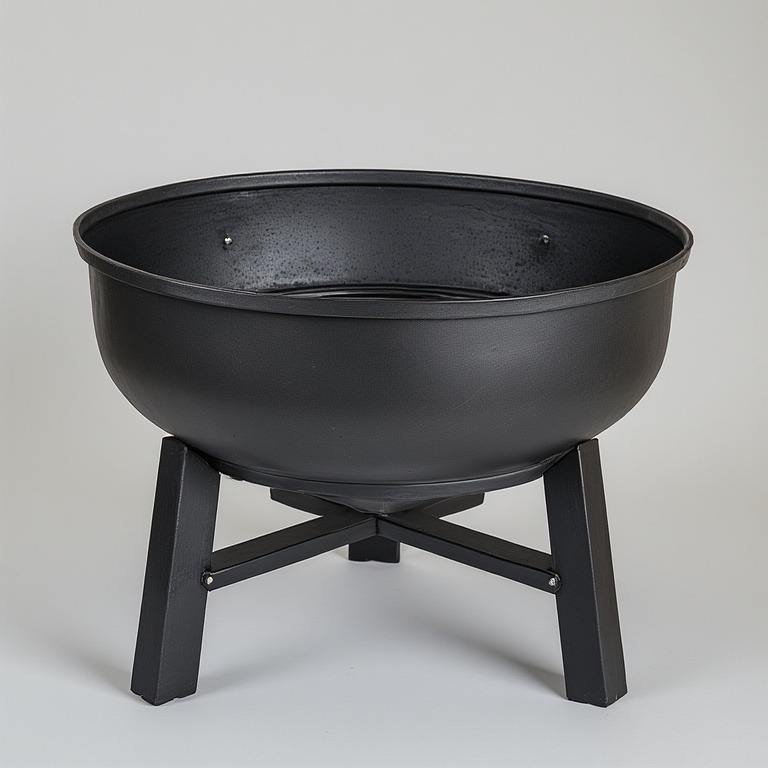 Brasero moderne en métal lourd conçu pour les terrasses et les patios extérieurs avec finition thermolaquée, combustion sécurisée, longue durée de vie