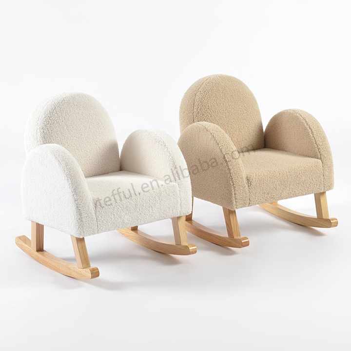 Fauteuil à bascule moderne à dossier haut et moelleux avec pieds en bois de caoutchouc pour salon, rembourrage pour bébé