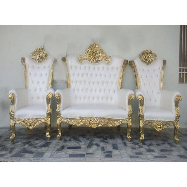 Modern High-Back Wedding Furniture Set Modern Design King-Queen Furniture Set Luxuries Wedding White-Gold Sofa Set USA