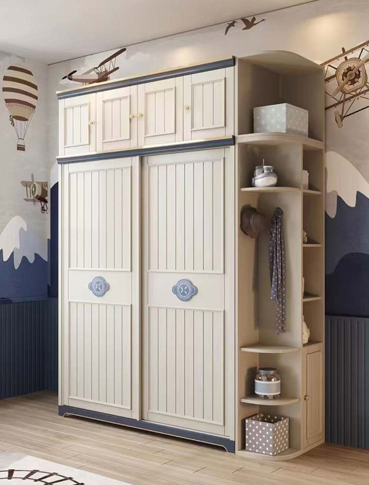 Armoire moderne haut de gamme colorée pour enfants, à pousser et à tirer, avec un grand espace de rangement