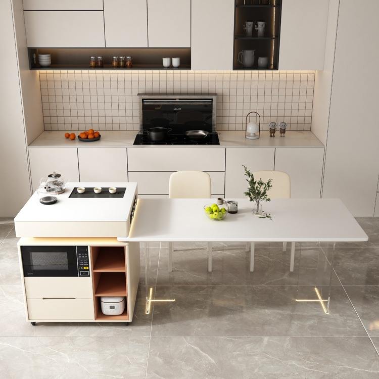 Table à thé haut de gamme moderne Table à manger à îlot suspendu avec évier Four à micro-ondes Plaque de roche pour usage domestique