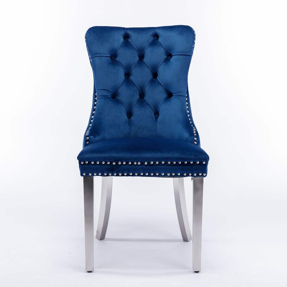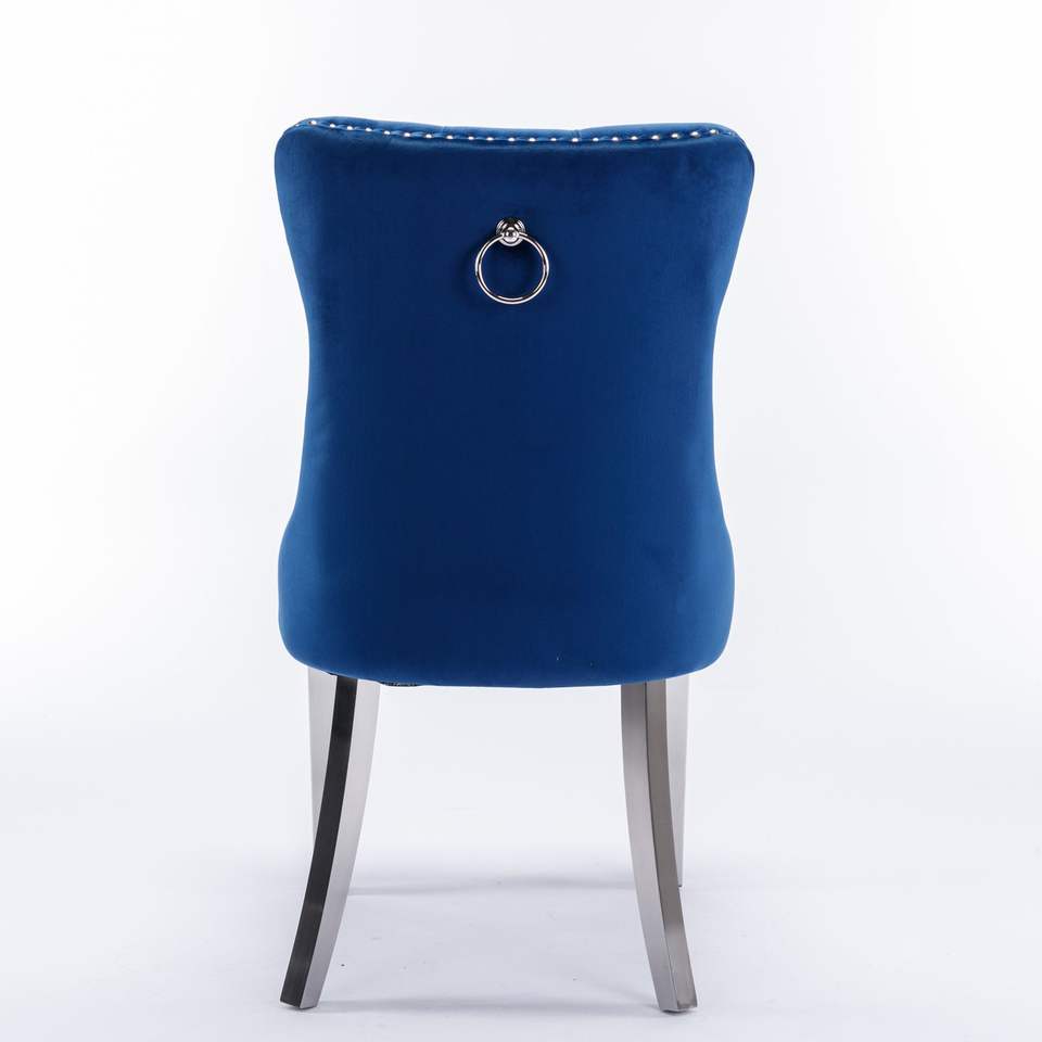 Chaise de salle à manger moderne haut de gamme en bois massif capitonnée, revêtement en velours contemporain, pieds en acier inoxydable chromé, tabourets de bar