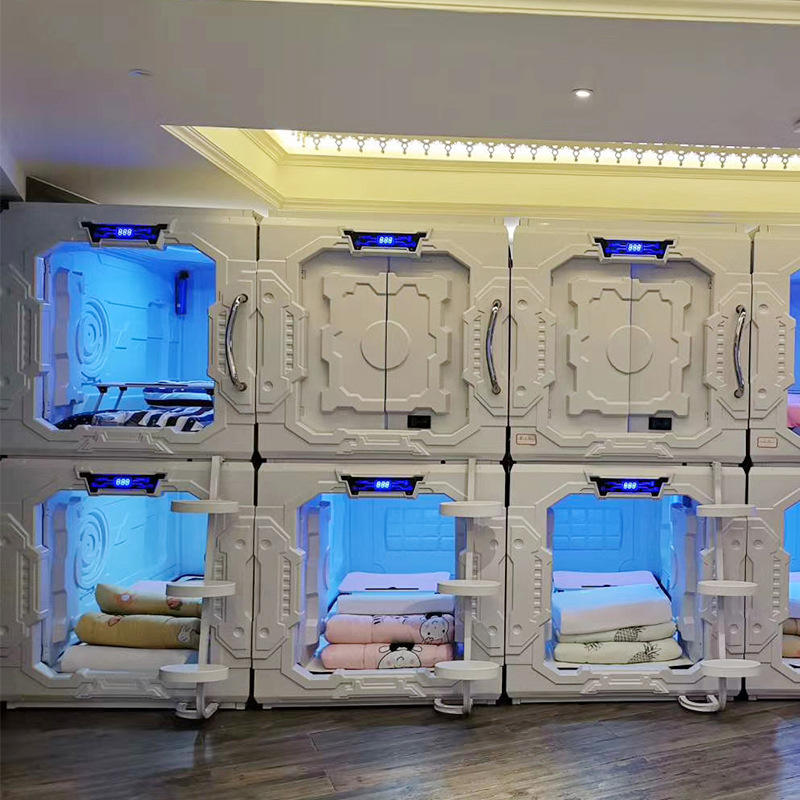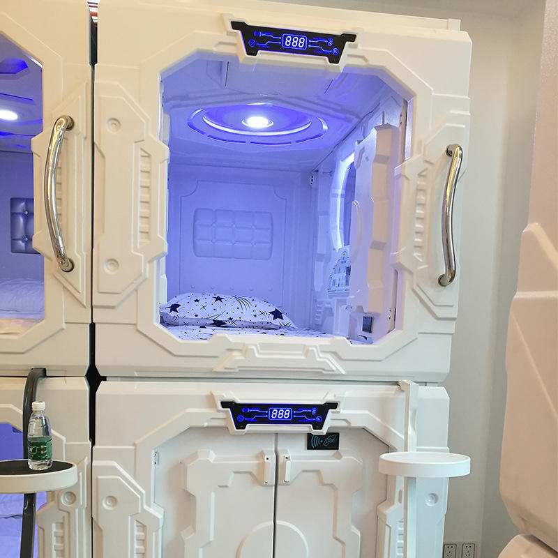 Lit superposé moderne pour adultes, style capsule spatiale, avec porte coulissante, pour chambre à coucher, voyage pour jeunes, hôtel d'e-sport, design haut de gamme en ABS