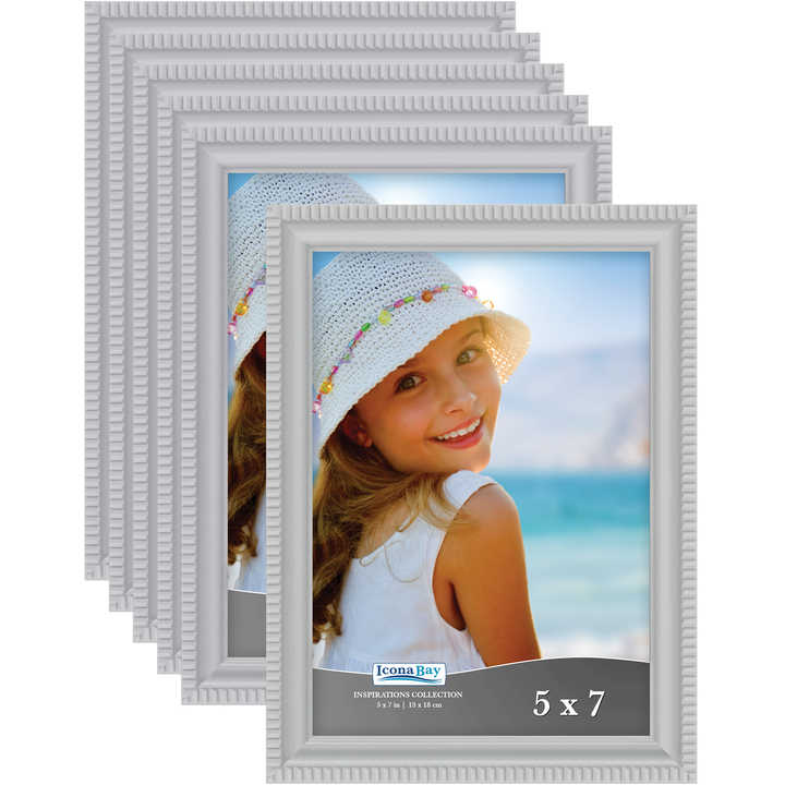 Cadre Photo Moderne en Plastique Résine 5X7 PS de Haute Qualité Gris avec Argent et Verre pour Décoration de Bureau ou Murale pour Maison