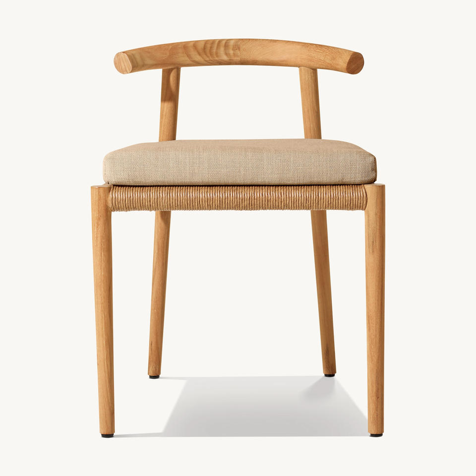 Chaise de salle à manger moderne de haute qualité Cadre en bois de teck massif avec siège en rotin synthétique tissé et coussin inclus