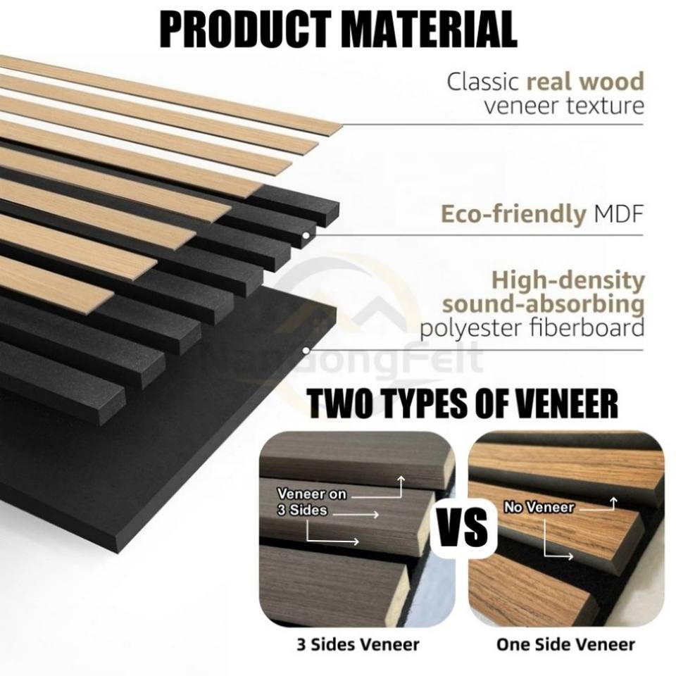 Nom du produit d'échantillon:Panneaux acoustiques muraux insonorisants en fibre de polyester et lattes de bois.