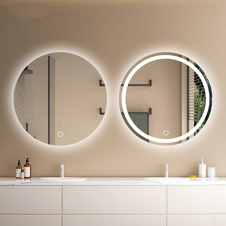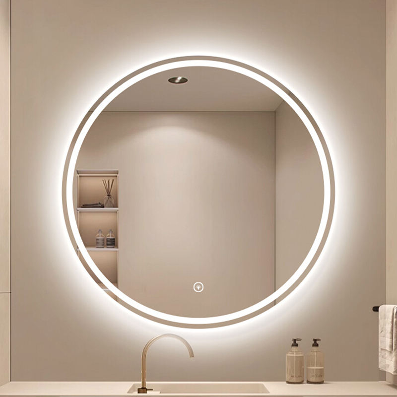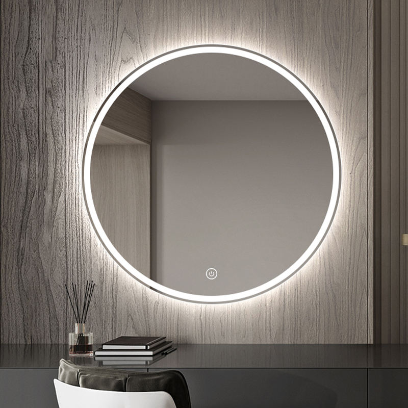 Décoration intérieure moderne Salle de bain Bouton tactile résistant à l'humidité Décoration murale ronde anti-buée Miroir intelligent avec lumière LED