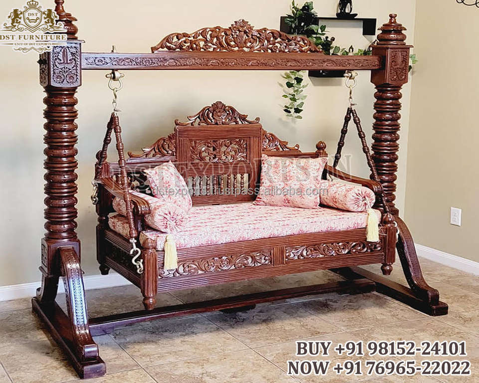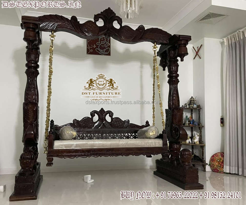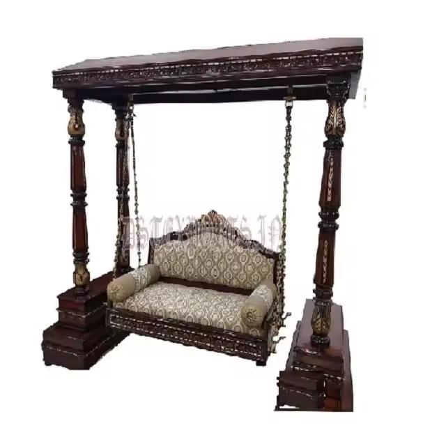 Décoration d'intérieur moderne, balançoire à double poteau, balançoire en teck à 3 places pour salon, finition brune, fabrication artisanale en bois, Jhula USA