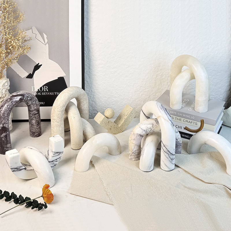 Décoration d'intérieur moderne, sculpture géométrique en arche, décoration en marbre, art en pierre personnalisé, ornement de luxe pour la chambre, le bureau, cadeaux