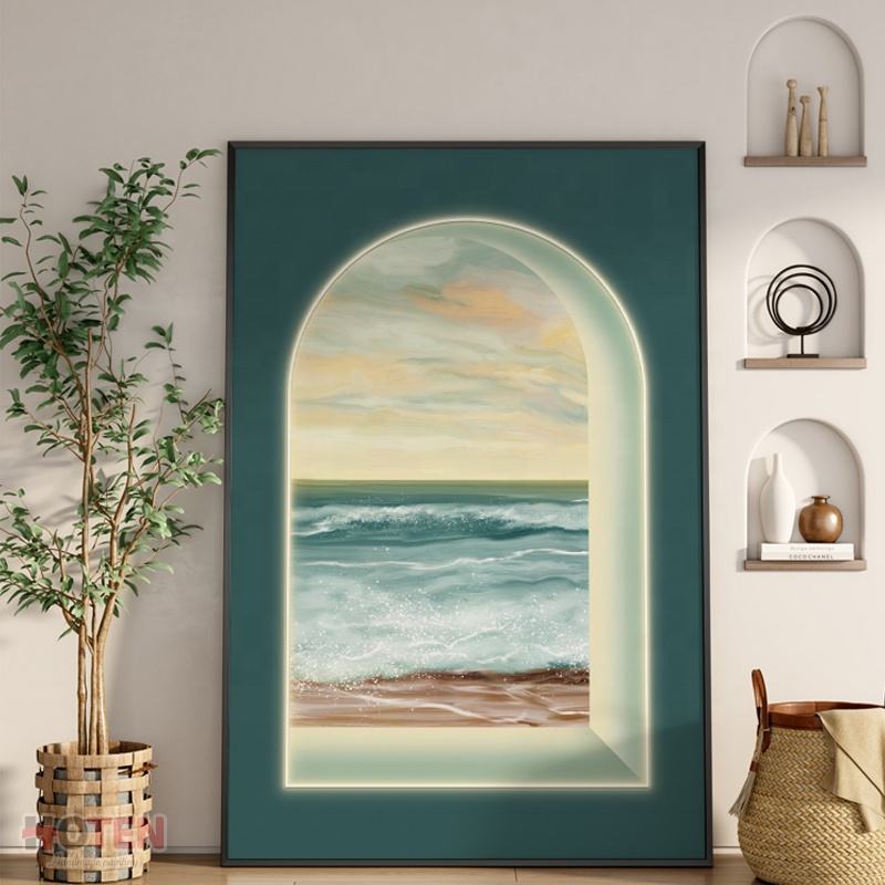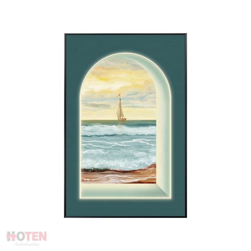 Décoration intérieure moderne peinte à la main peinture à l'huile paysage de mer toile fenêtre mur Art photo
