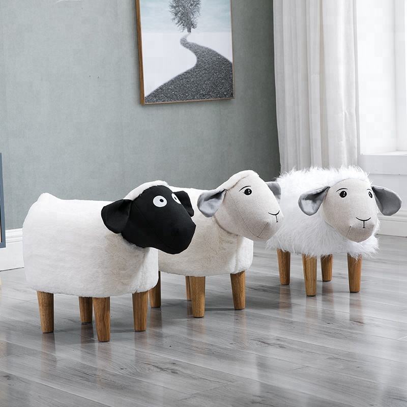Décoration de maison moderne, tabouret en bois pour enfants en forme de mouton blanc, pouf en velours, tabourets de jardin