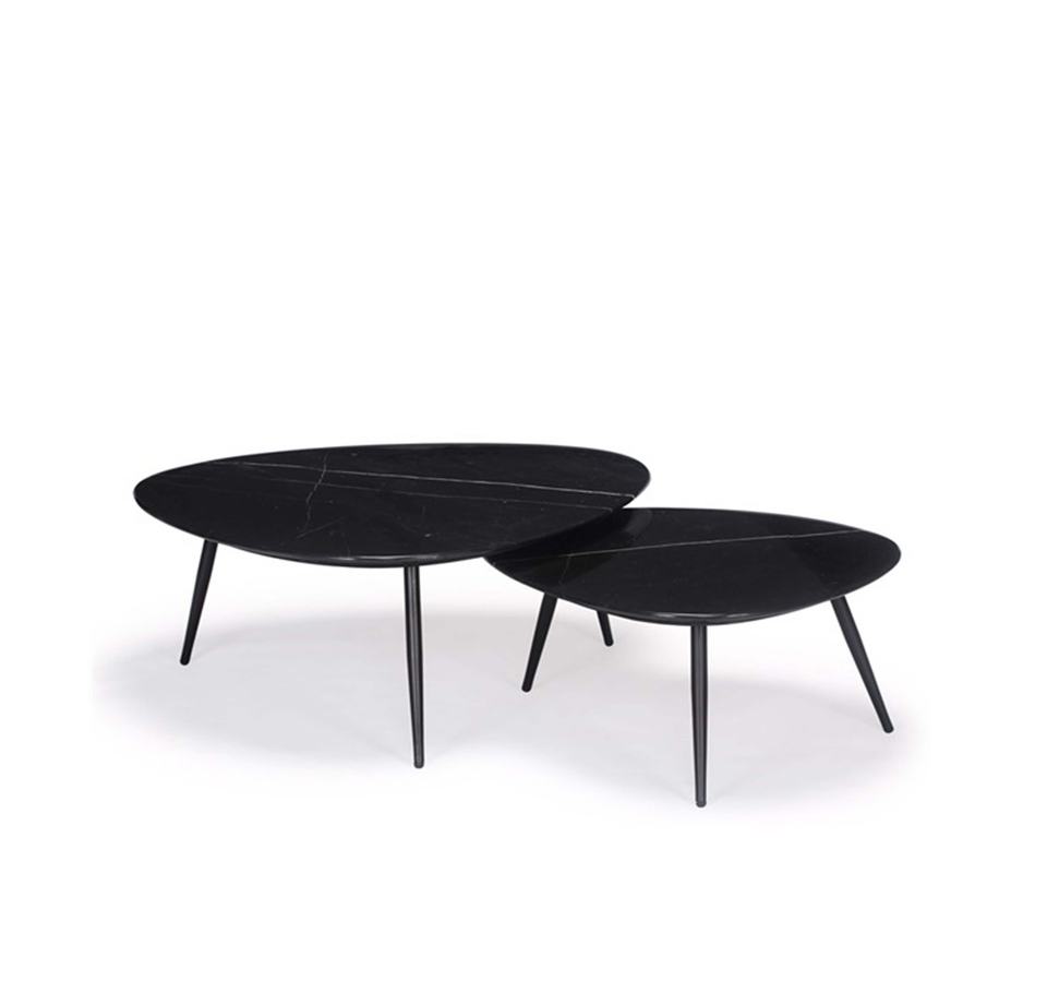 Meubles de maison modernes Table basse de salon avec tables gigognes en marbre noir Finition naturelle et fonction extensible