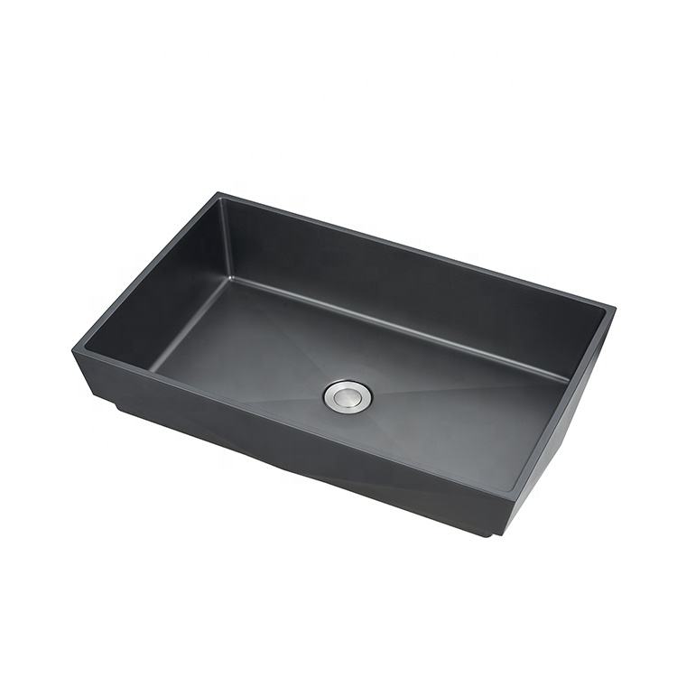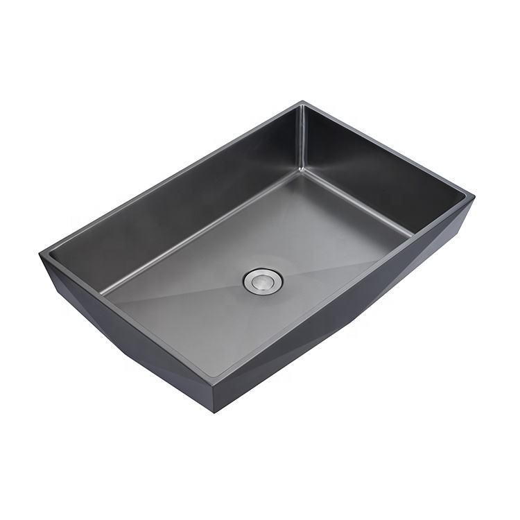 Lavabo de salle de bain rectangulaire, simple, moderne, en acier inoxydable, couleur noire, fait à la main