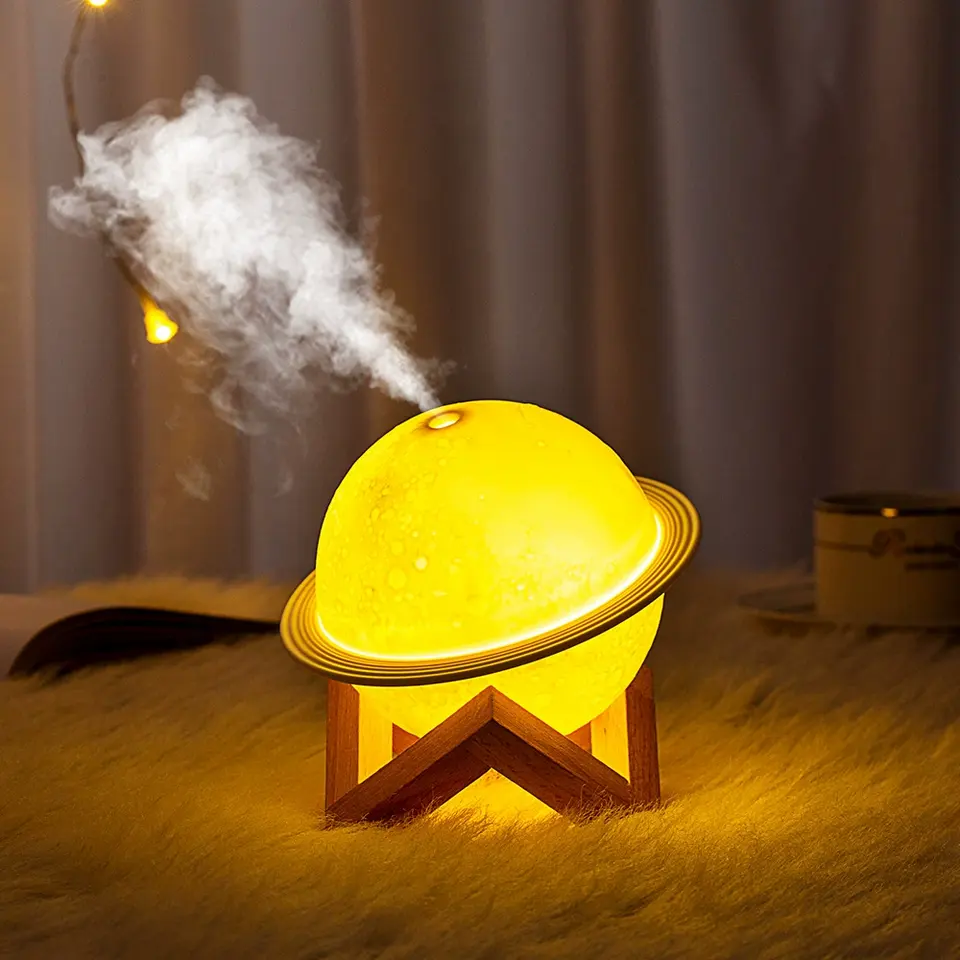 Humidificateur USB moderne pour bureau à domicile Veilleuse LED Creative Moon Planet Air Atomizer ABS Silencieux pour chambre à coucher Bar Spa Salon de beauté