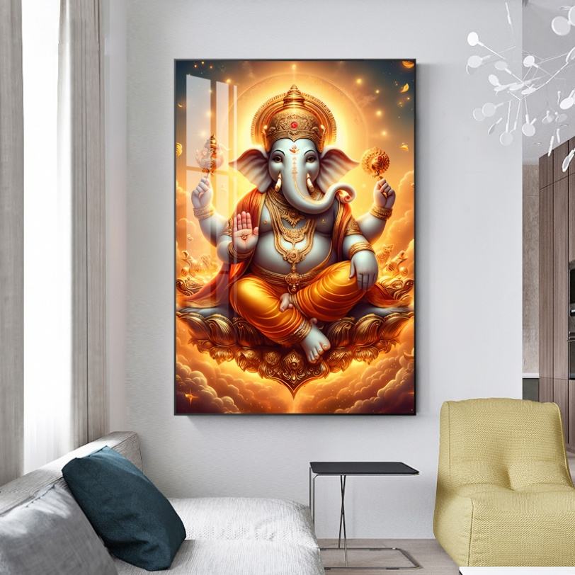 Décoration murale moderne pour la maison, lampe LED, peinture en porcelaine et cristal, impression HD personnalisée pour hôtel, peinture d'éléphant divin