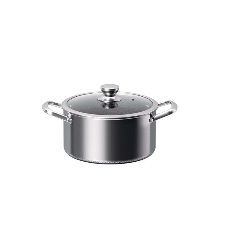 Ensemble de casseroles modernes en acier inoxydable triple couche, revêtement céramique antiadhésif, compatible lave-vaisselle, comprend des marmites de 20/24/28 cm