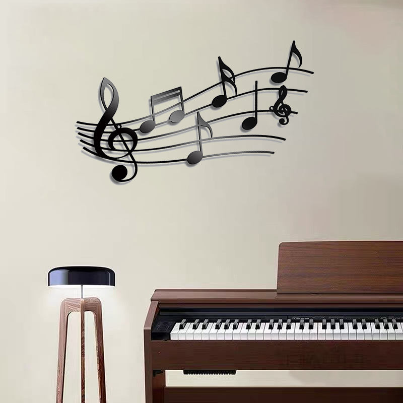 Décorations de notes de musique Offres Spéciales modernes Art mural Décoration murale en métal Panneaux muraux noirs