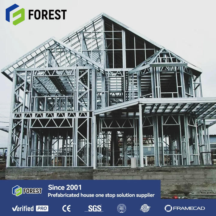 Villa modulaire moderne en acier léger avec un design écologique et une construction à faible coût pour les développements périurbains contemporains