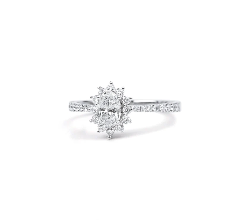 Bague de fiançailles moderne en diamant de laboratoire certifié IGI, taille ovale, diamant E F VS, or massif 18 carats, élégante, pour femme