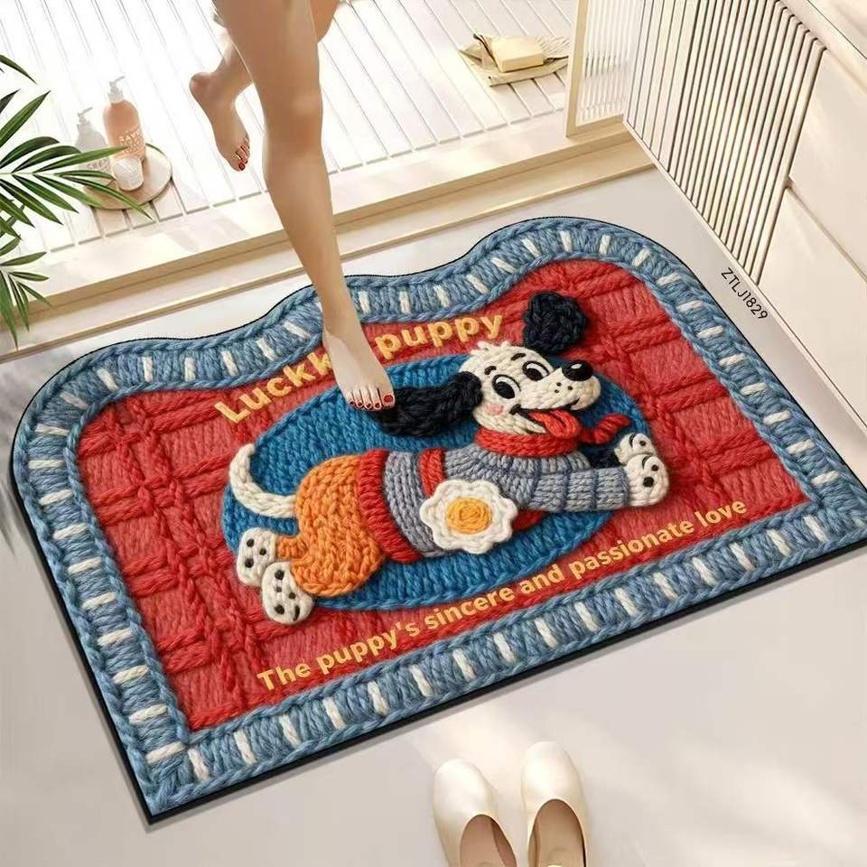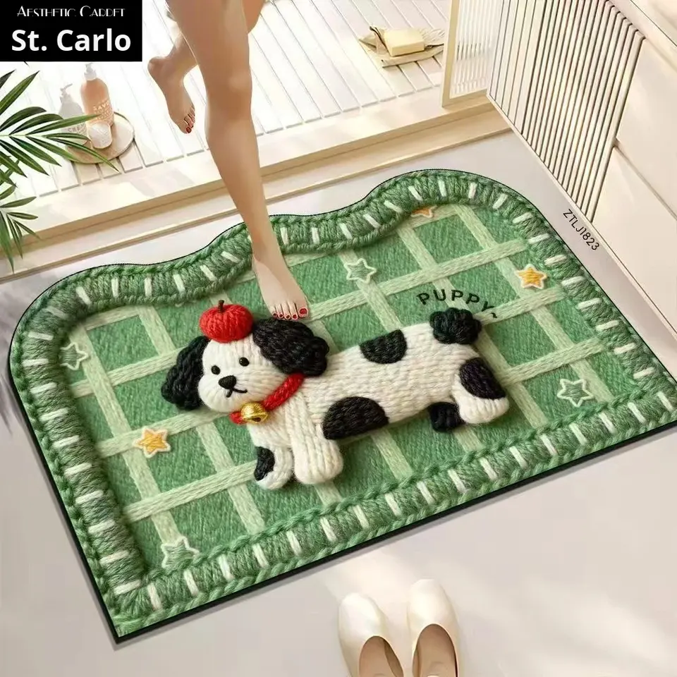 Imitation moderne Impression 3D Lin Polyester Cartoon Tapis de sol de salle de bain Absorbant l'eau Antidérapant Lavabo de toilette Tapis à séchage rapide