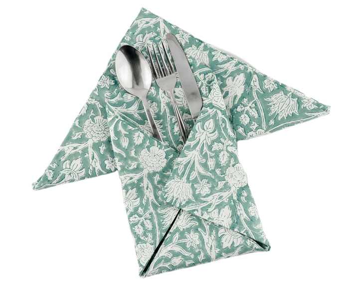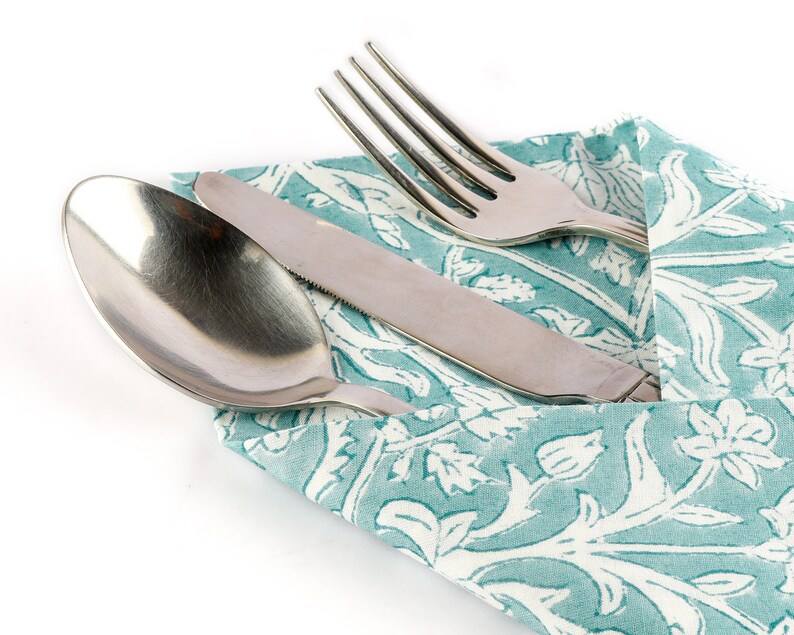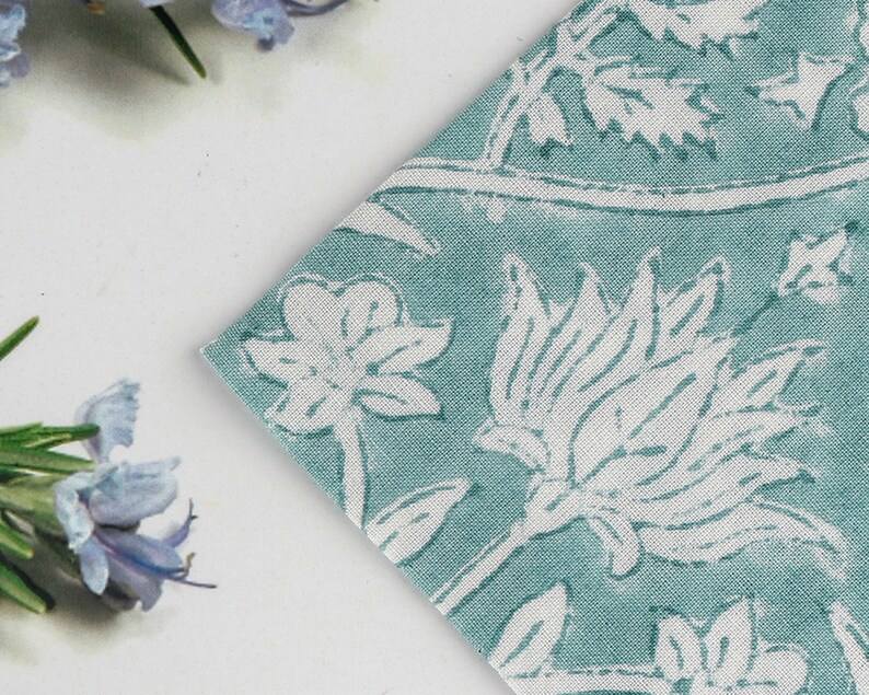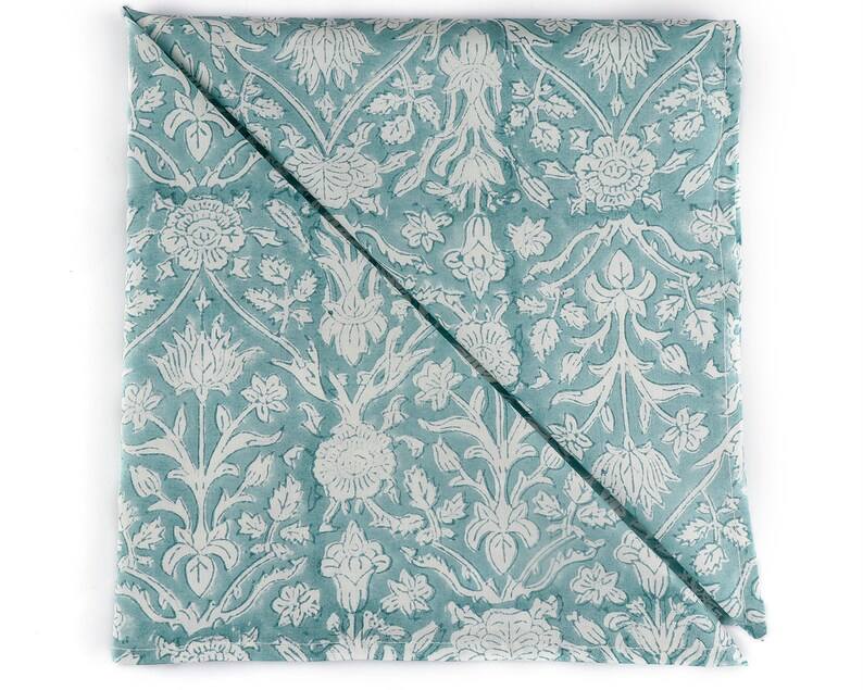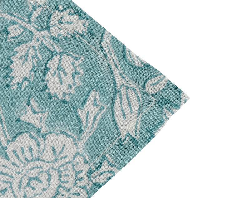 Serviettes en coton imprimées à la main florales indiennes modernes bleu sarcelle et blanc carré fait à la main pour les mariages maison et fêtes pour les événements