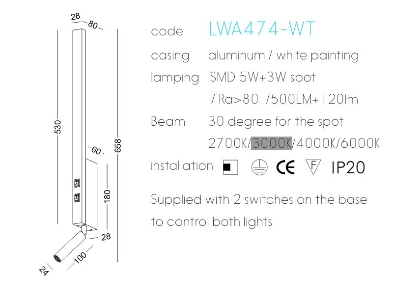 Dimension du produit:L658xW28xH80(mm)