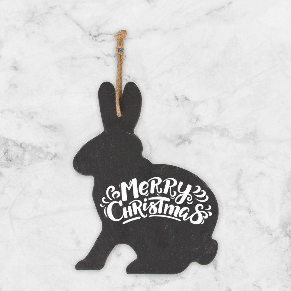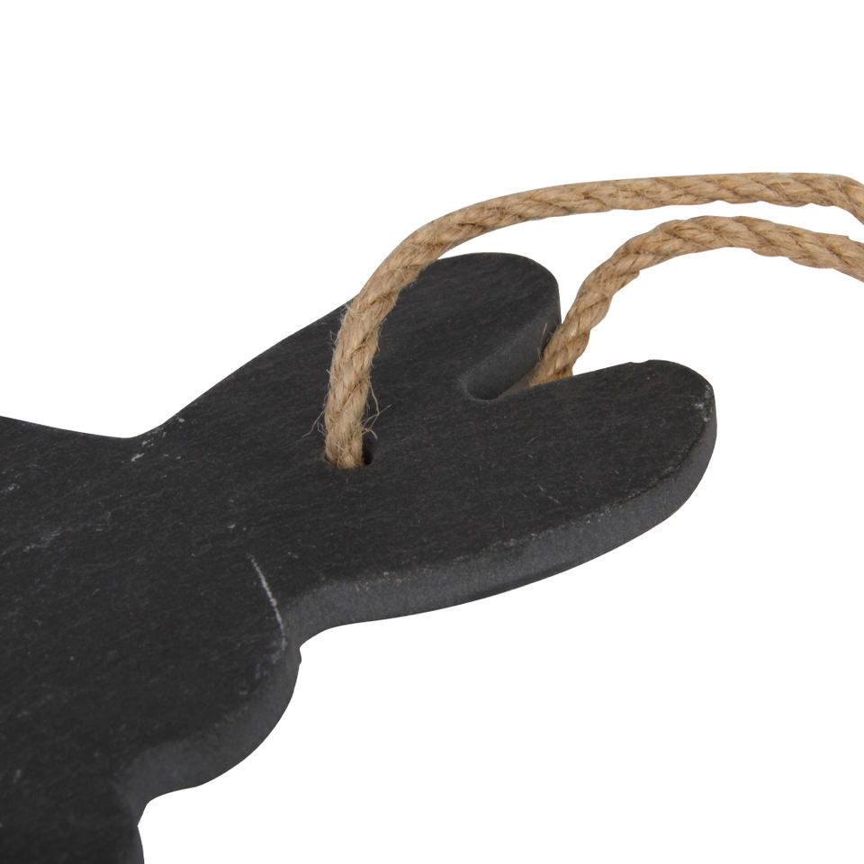 Tableau de menu suspendu en ardoise double face en forme de lapin, style industriel moderne, nature morte