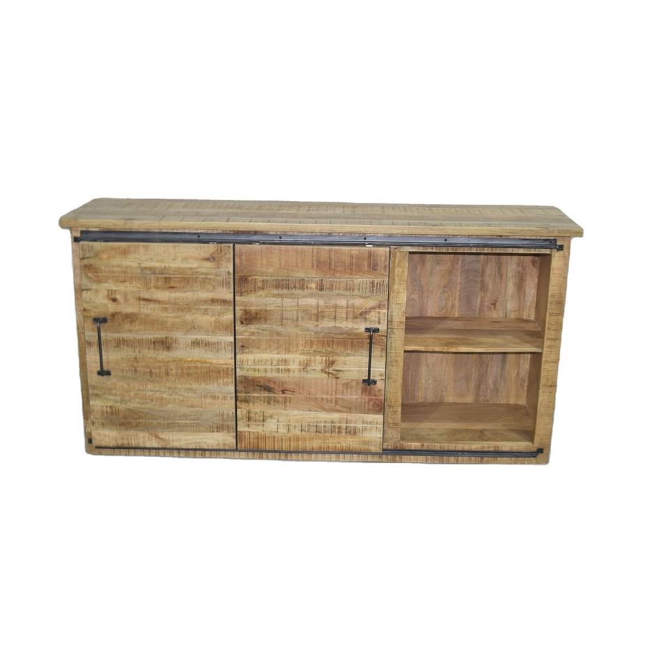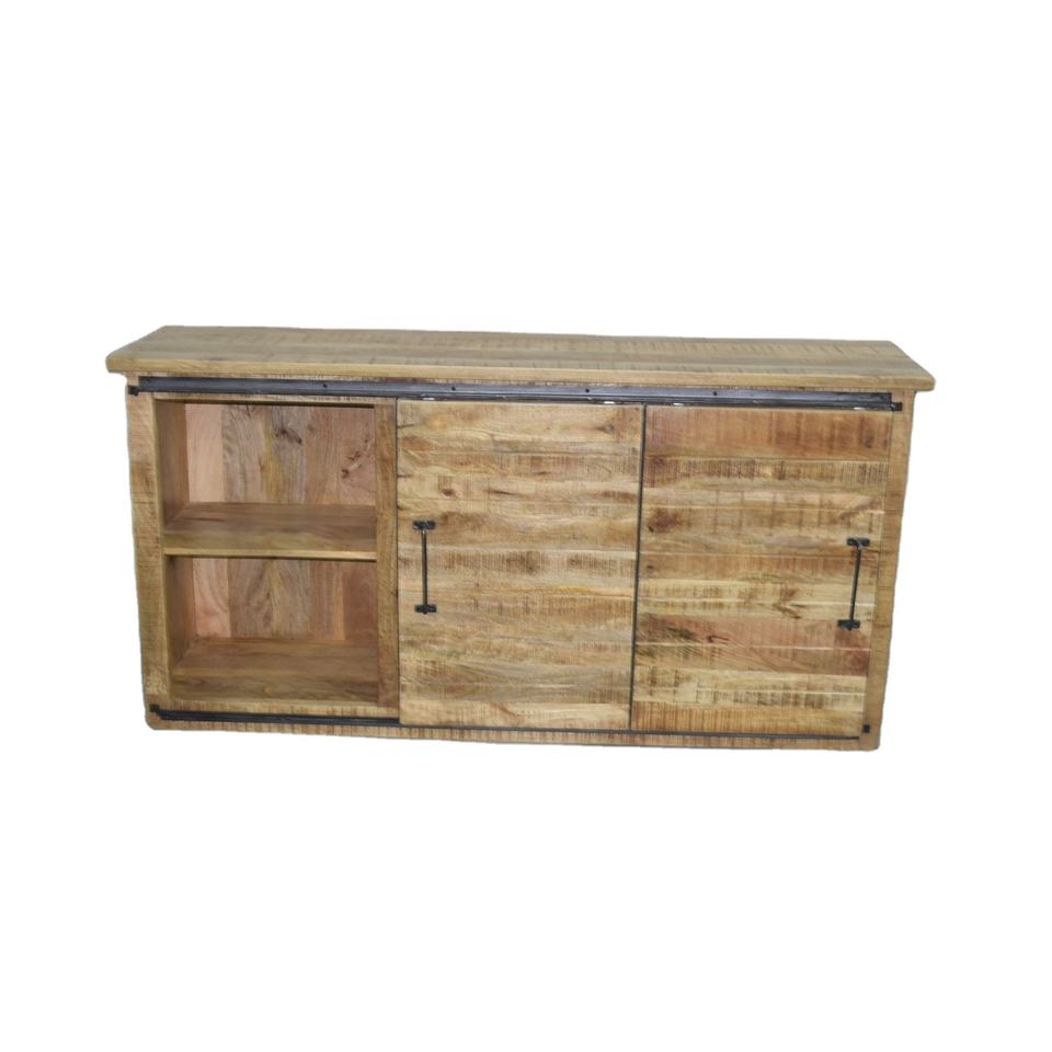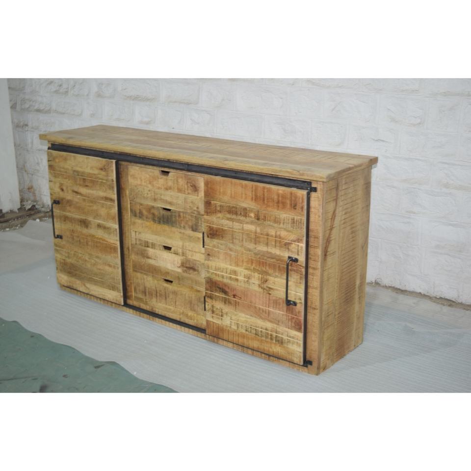 Buffet moderne en bois de manguier massif de style industriel avec tiroirs coulissants Boutons en métal pour le rangement des meubles de maison de ferme et du salon