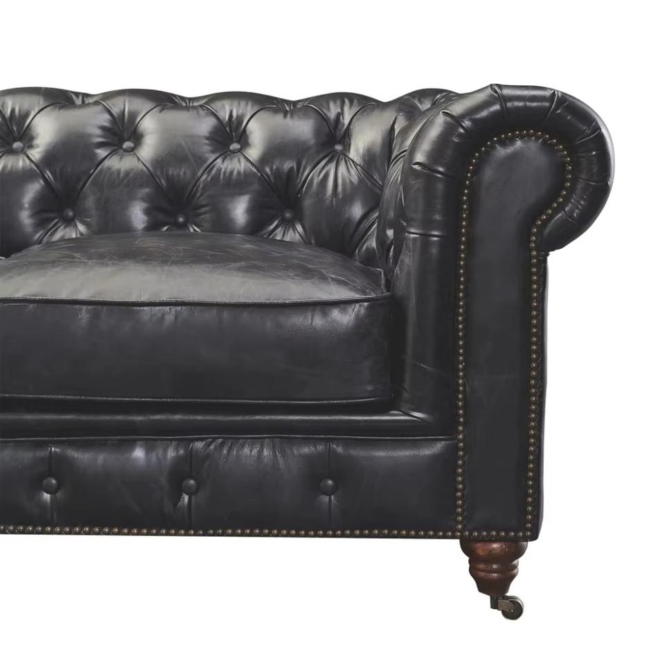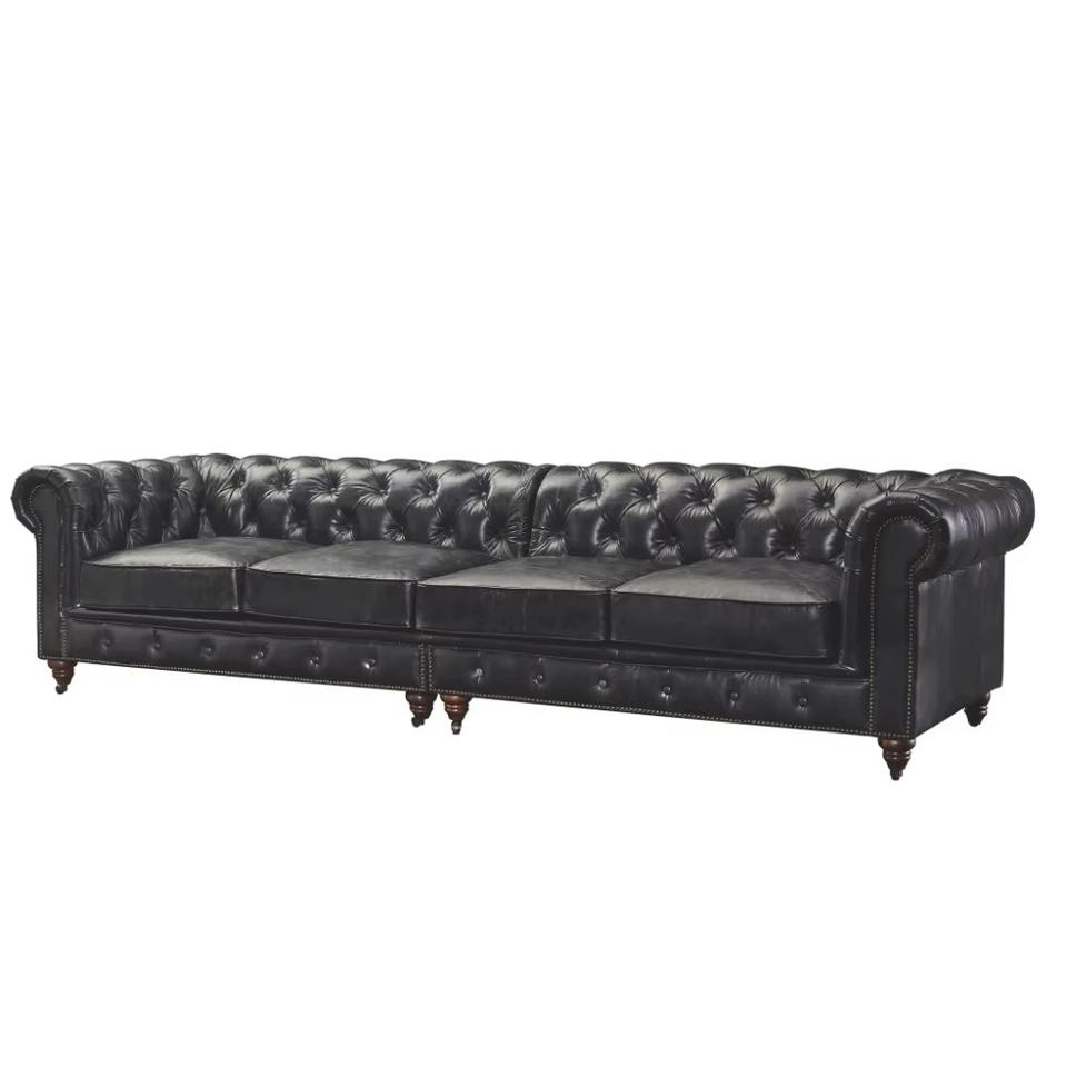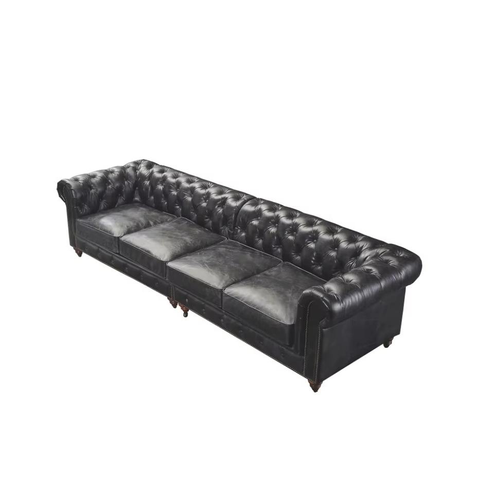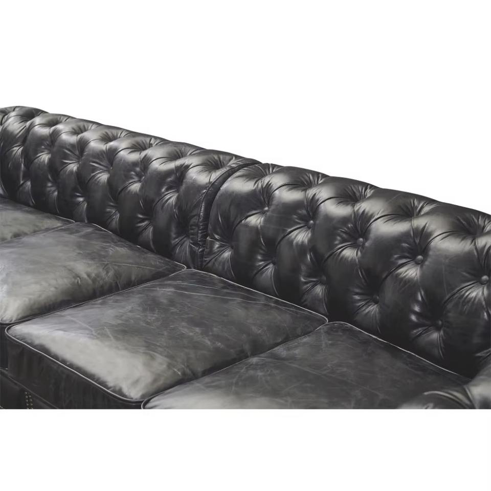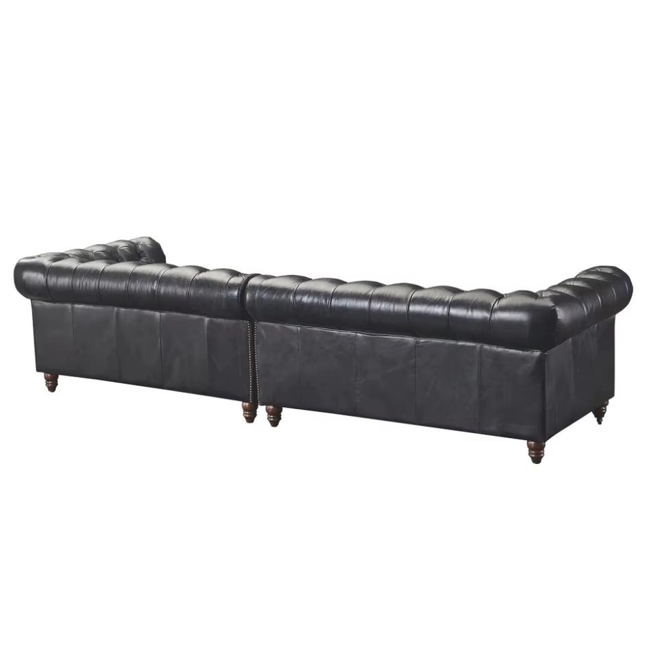 Modern Industrial Three Seat Corner Sofa Armchair Set in Genuine Leather Black Eco-Friendly Durable