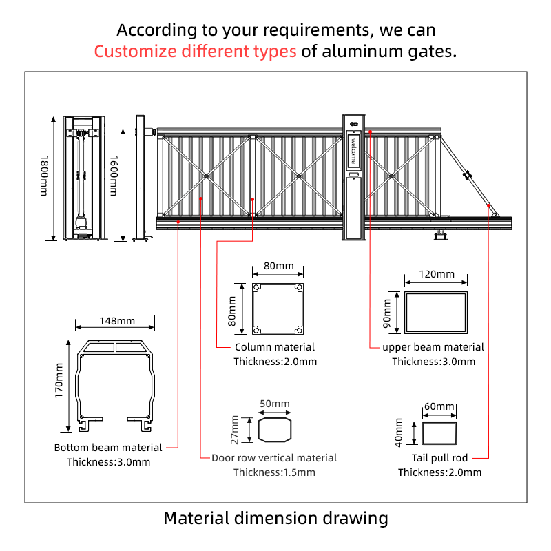 Portes automatiques à cantilever coulissantes en aluminium avec capteur infrarouge moderne pour l'extérieur, pour usine, entrepôt, ferme