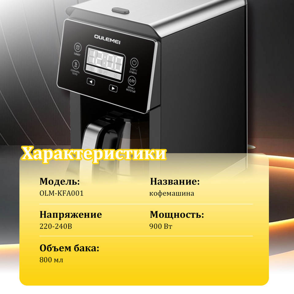 Cafetière à filtre électrique intégrée moderne, programmable automatique, broyage, acier inoxydable, 900W, 20 bars, pour hôtel, maison