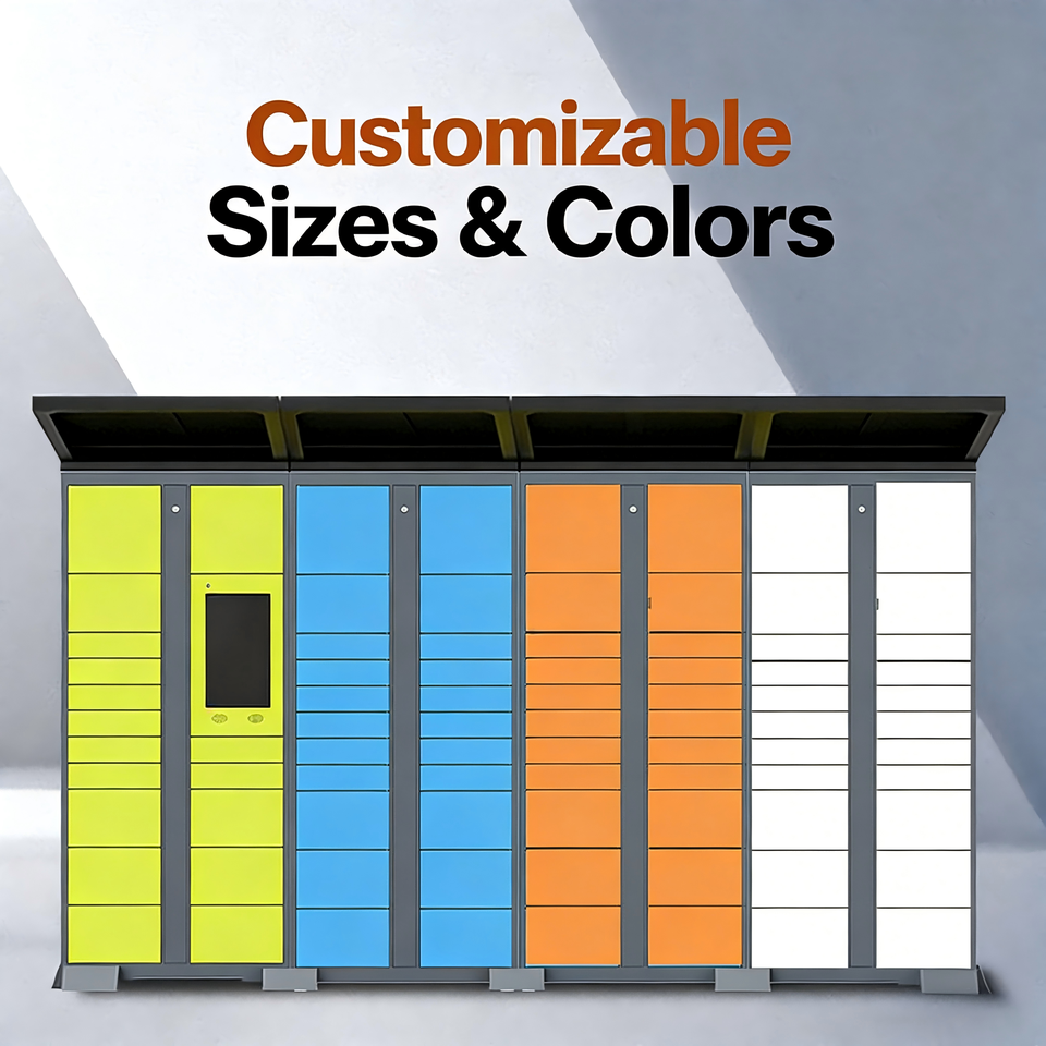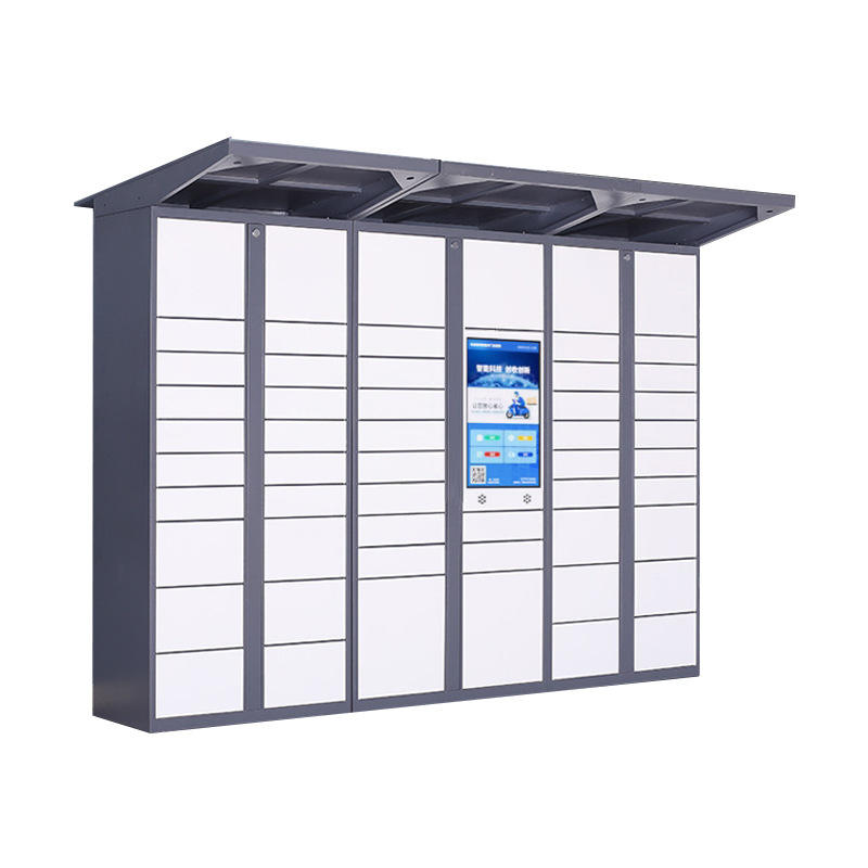 Boîte de livraison intelligente moderne avec options linguistiques et interface tactile pour une logistique automatisée en libre-service 24h/24 et 7j/7