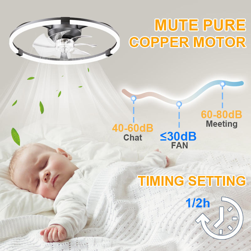 Ventilateurs de plafond de chambre à coucher intelligents à LED modernes, 6 vitesses, marche avant/arrière, gradation infinie, télécommande, application de contrôle, moteur CC en fer, 7 pales