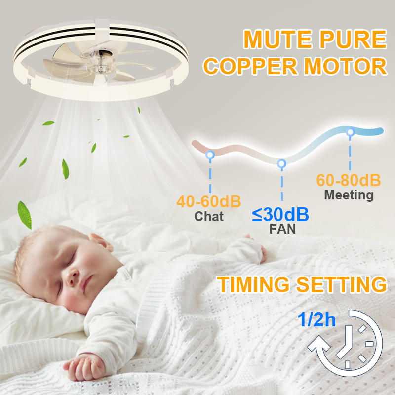 Ventilateur de plafond moderne intelligent à LED électrique en plastique de 20 pouces avec lumière, 5 pales, moteur BLDC, flux d'air réversible, silencieux, télécommande