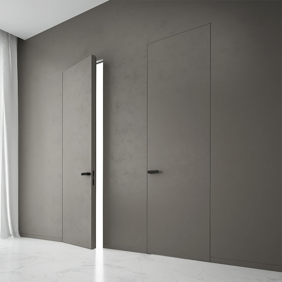 Porte invisible moderne peignable sans cadre en aluminium et bois, porte pré-montée dissimulée avec cadre en bois massif, porte secrète