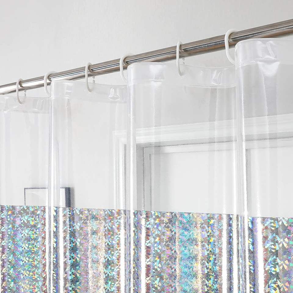 Rideau de douche moderne irisé amusant et brillant arc-en-ciel design coloré unique réfléchissant brillant EVA PEVA pour salle de bain