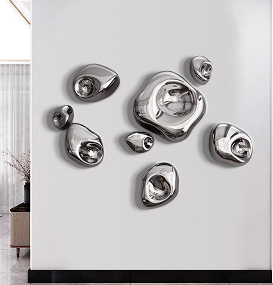 Ensemble de sculptures murales en miroir en forme de galets argentés irréguliers modernes pour la décoration de salon et de salle de bain de luxe