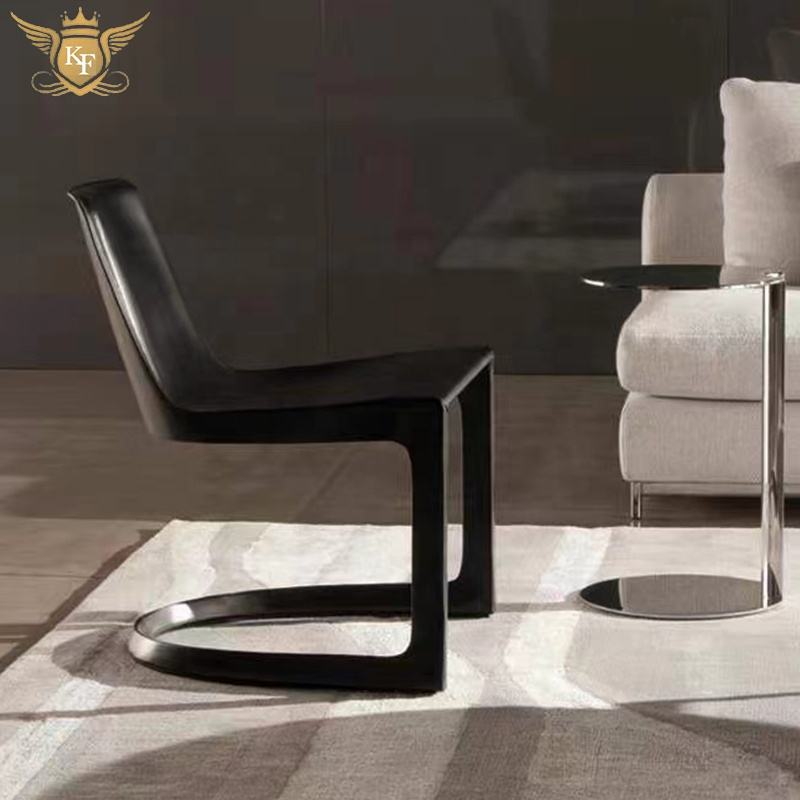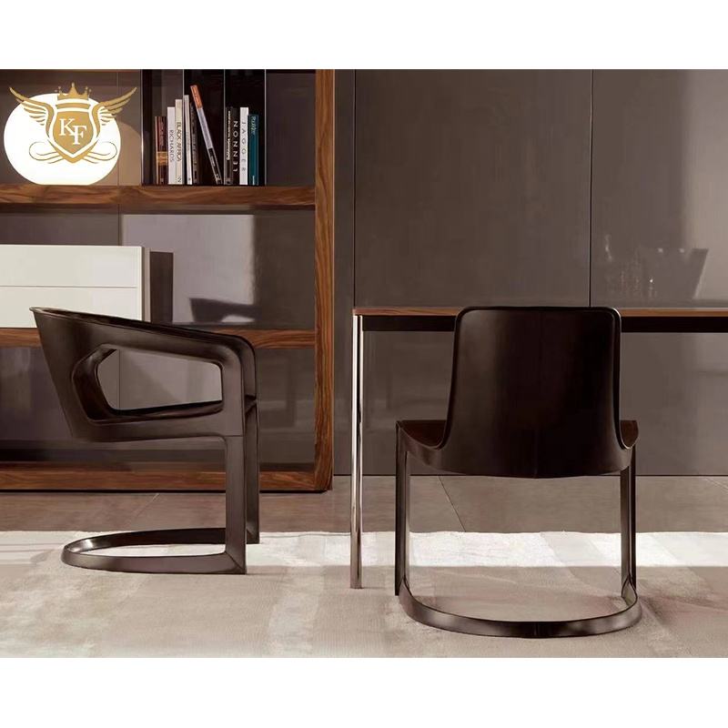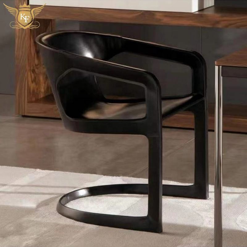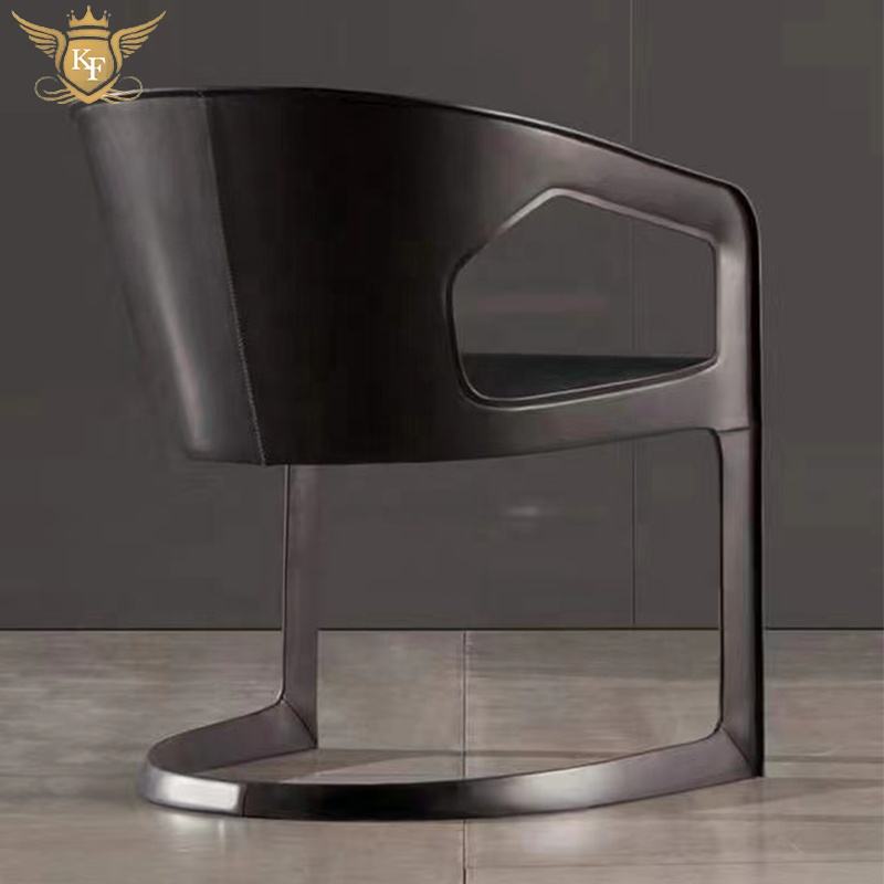 Chaise de salle à manger en cuir au design italien moderne, mobilier d'hôtel, fauteuil à structure métallique noir, chaise de restaurant en forme de S
