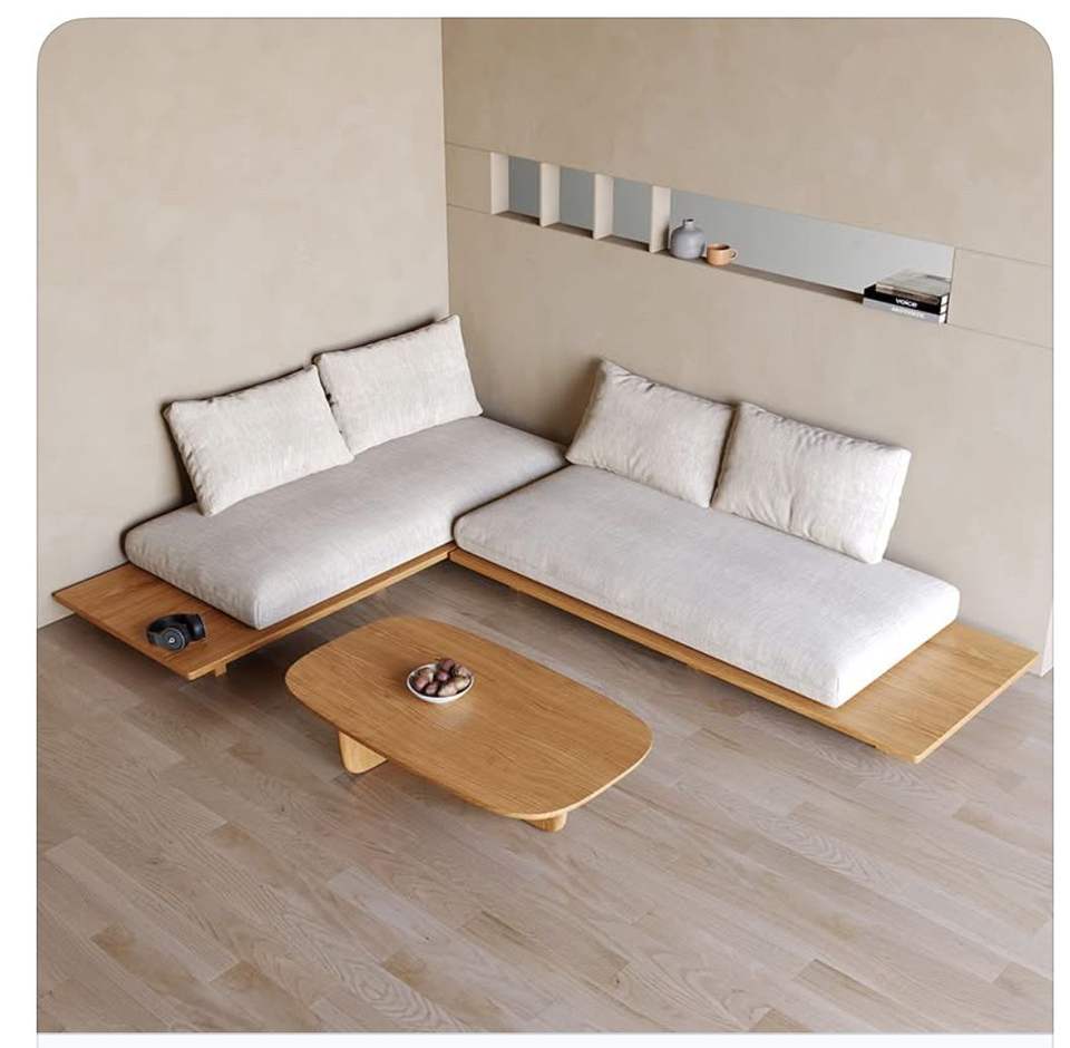Ensemble de canapés modernes Japandi à plateforme basse avec base en bois de teck