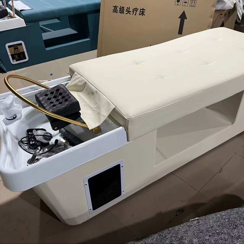 Lit de lavage de cheveux moderne japonais avec circulation d'eau pour spa capillaire, lit de massage thaïlandais intégré pour salon de coiffure