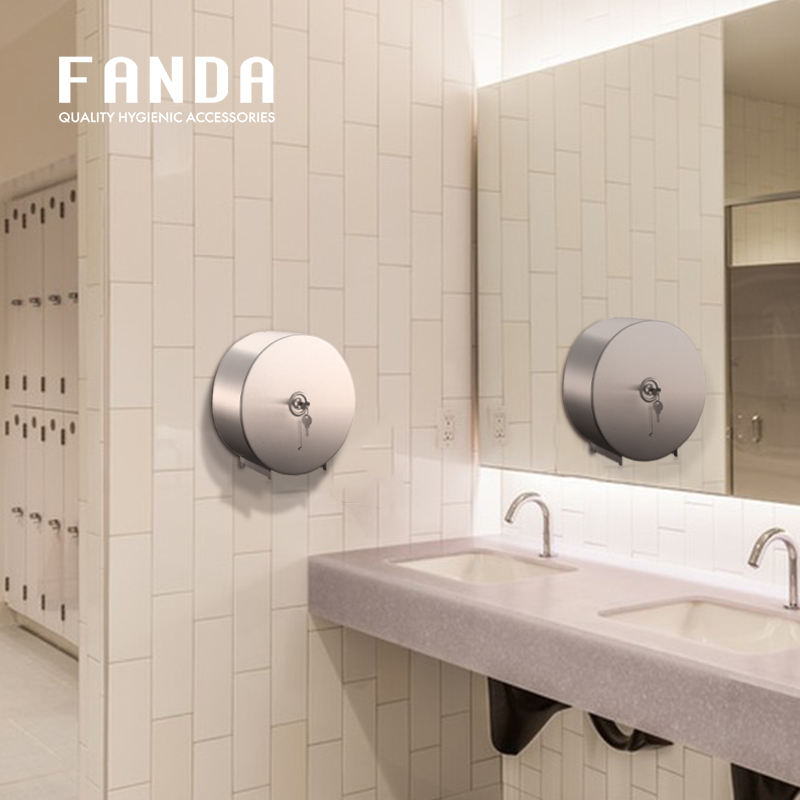 Distributeur de papier toilette géant moderne FANDA en acier inoxydable brossé, mural, pour toilettes commerciales