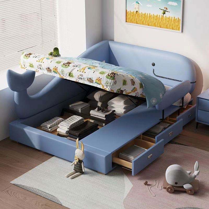 Lit moderne pour enfants avec motif baleine et garde-corps Lit simple style princesse pour garçons et filles avec rangement