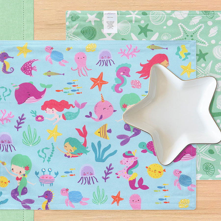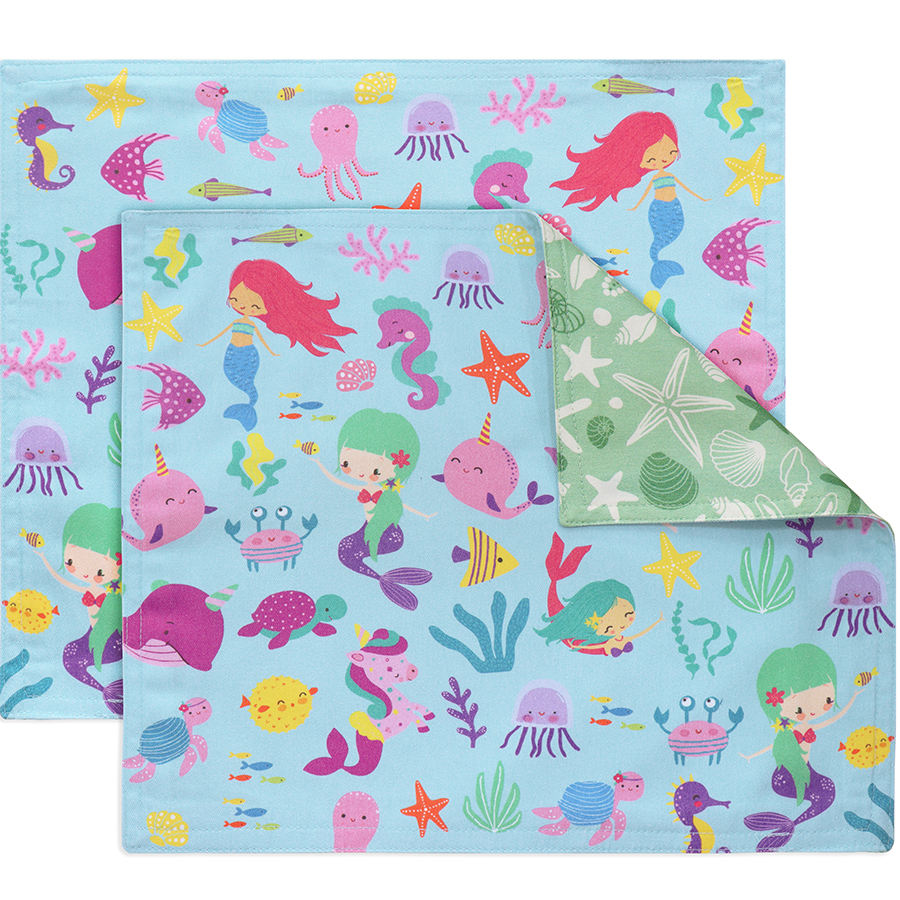Modern Kids Reusable 2-Ply Mermaid Printed Cloth Placemats Thick Absorbent 15"x13" Lunch Box Liners Machine Washable for Home