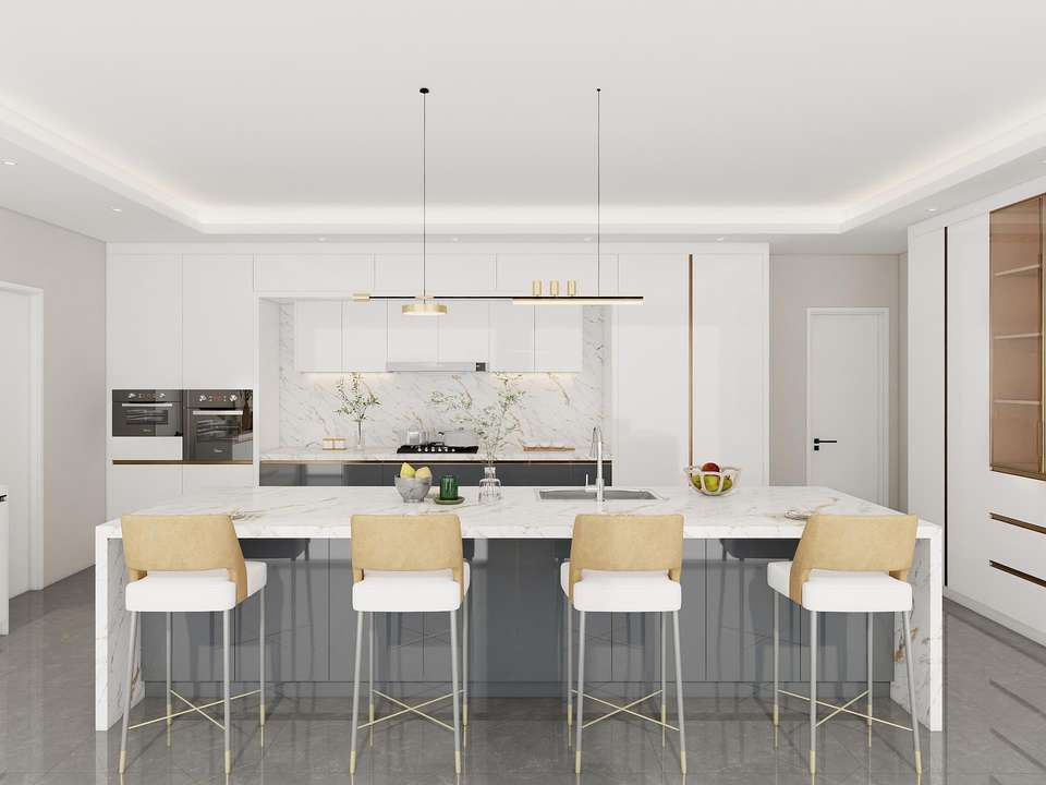 Meuble de cuisine moderne style européen, finition laquée brillante, construction en contreplaqué, crédence imperméable pour appartement