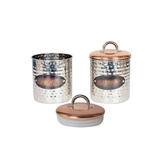 Boîtes de cuisine modernes, lot de 2 boîtes de rangement pour aliments en acier inoxydable martelé, vaisselle en métal bon marché, fournisseurs indiens