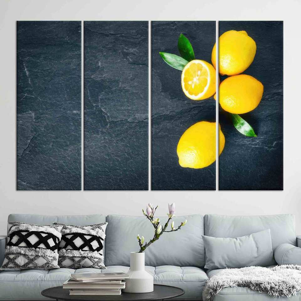Décoration de cuisine moderne : œuvre d'art sur toile imprimée avec motif citron, lot de 4 toiles
