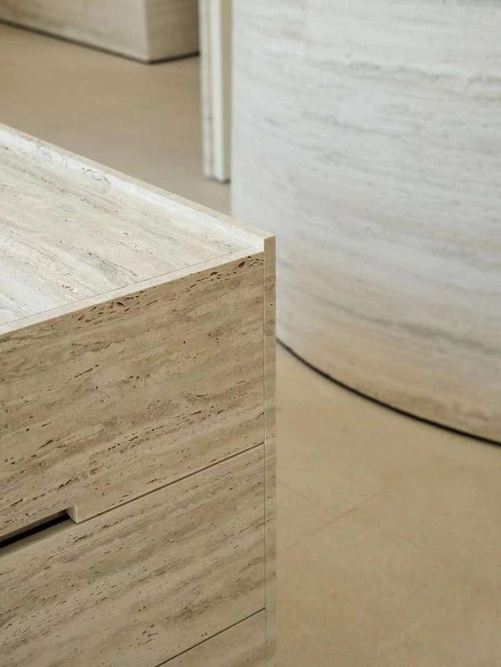 Îlot de cuisine moderne design de luxe en marbre travertin beige couvrant la décoration du comptoir de bar